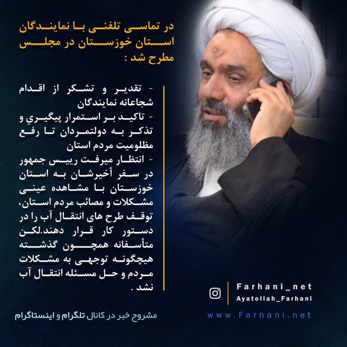 پیگیری و حمایت آیت الله فرحانی از اقدام نمایندگان استان خوزستان
